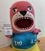 桂浜水族館の公式マスコットキャラクターです。ファンサービスがとても旺盛で、自ら募金箱を持って活動を応援してくれました!